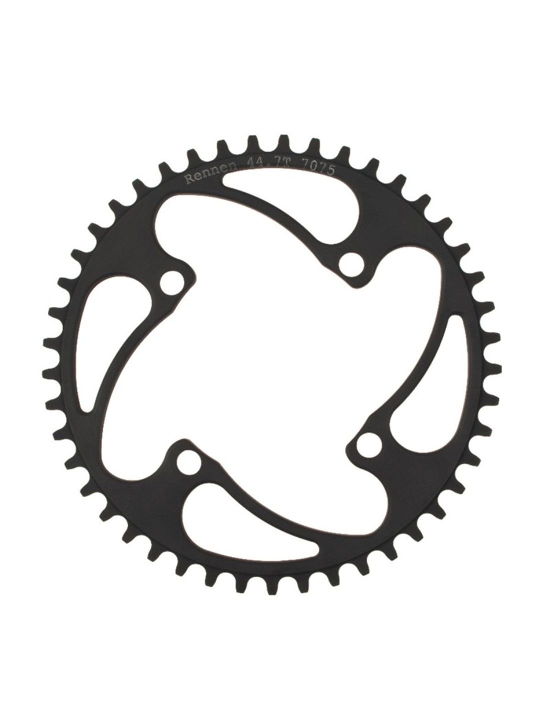 Fabricada en EE. UU. A partir de un aluminio 7075 mecanizado, el plato RENNEN es única gracias al dentado decimal hecho a partir de una ligera modificación de la circunferencia de la corona. Esto te permite cambiar tu marcha por fracción de dientes según tus necesidades en relación a la pista de BMX en la que vas a rodar. Está diseñado para montarse en un juego de bielas de 4 tornillos.